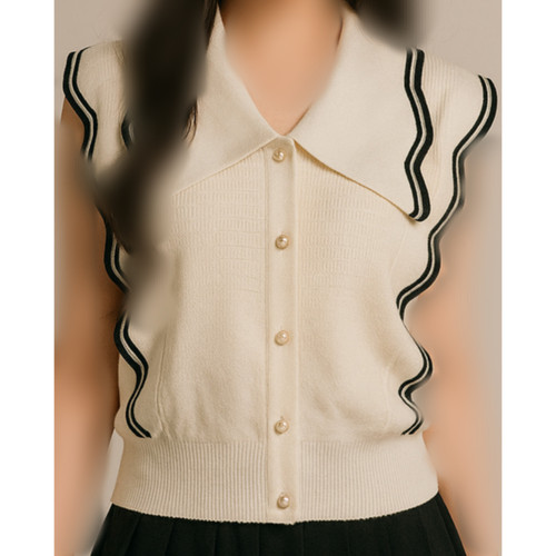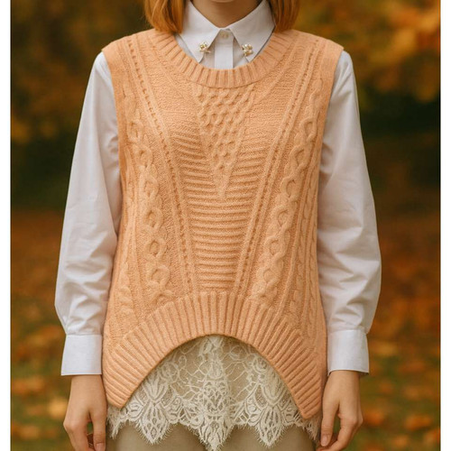ناموجودتاپ بافت یقه دار جلیقه زنانه ریزبافت زنانه پینترستی فری سایز تا ۴۶