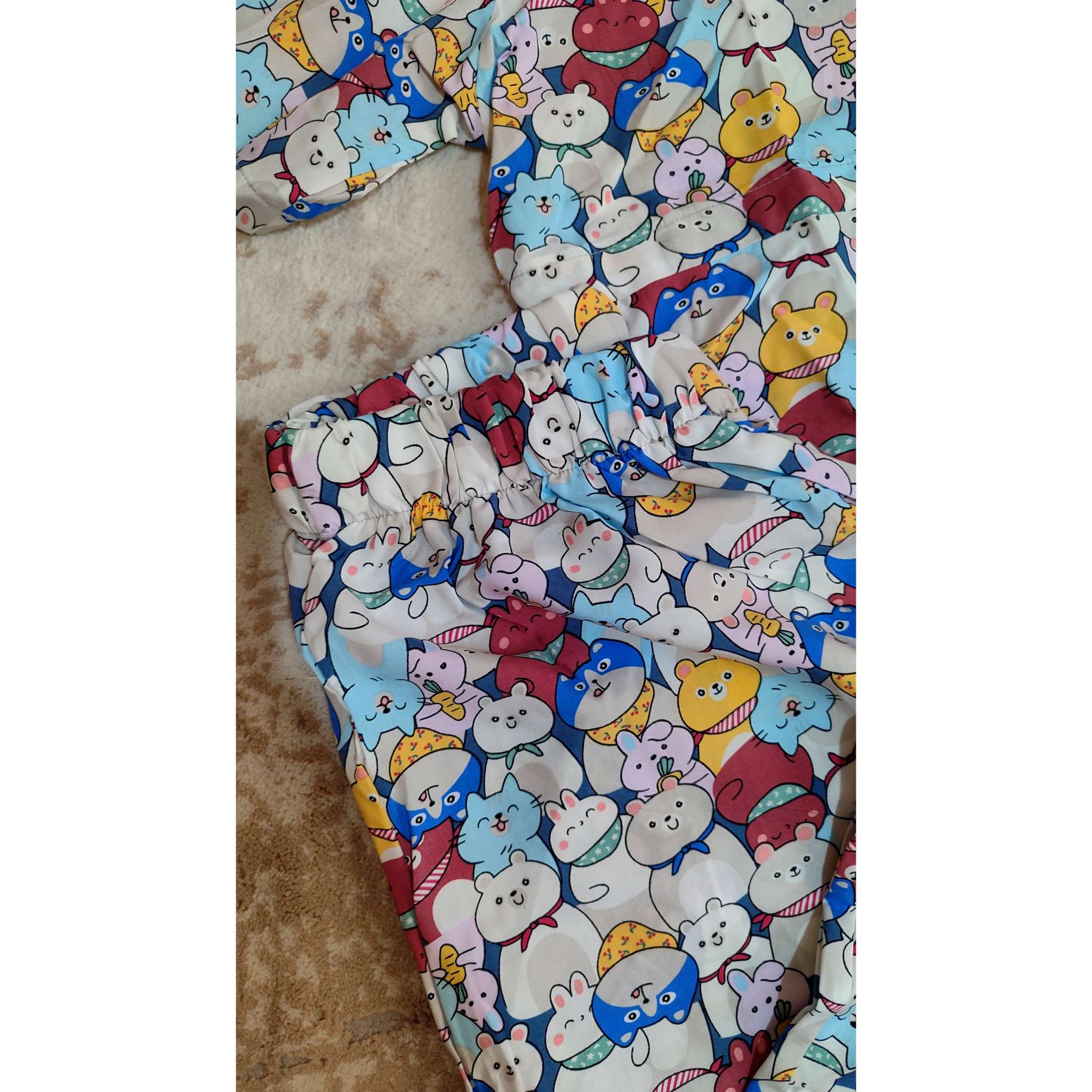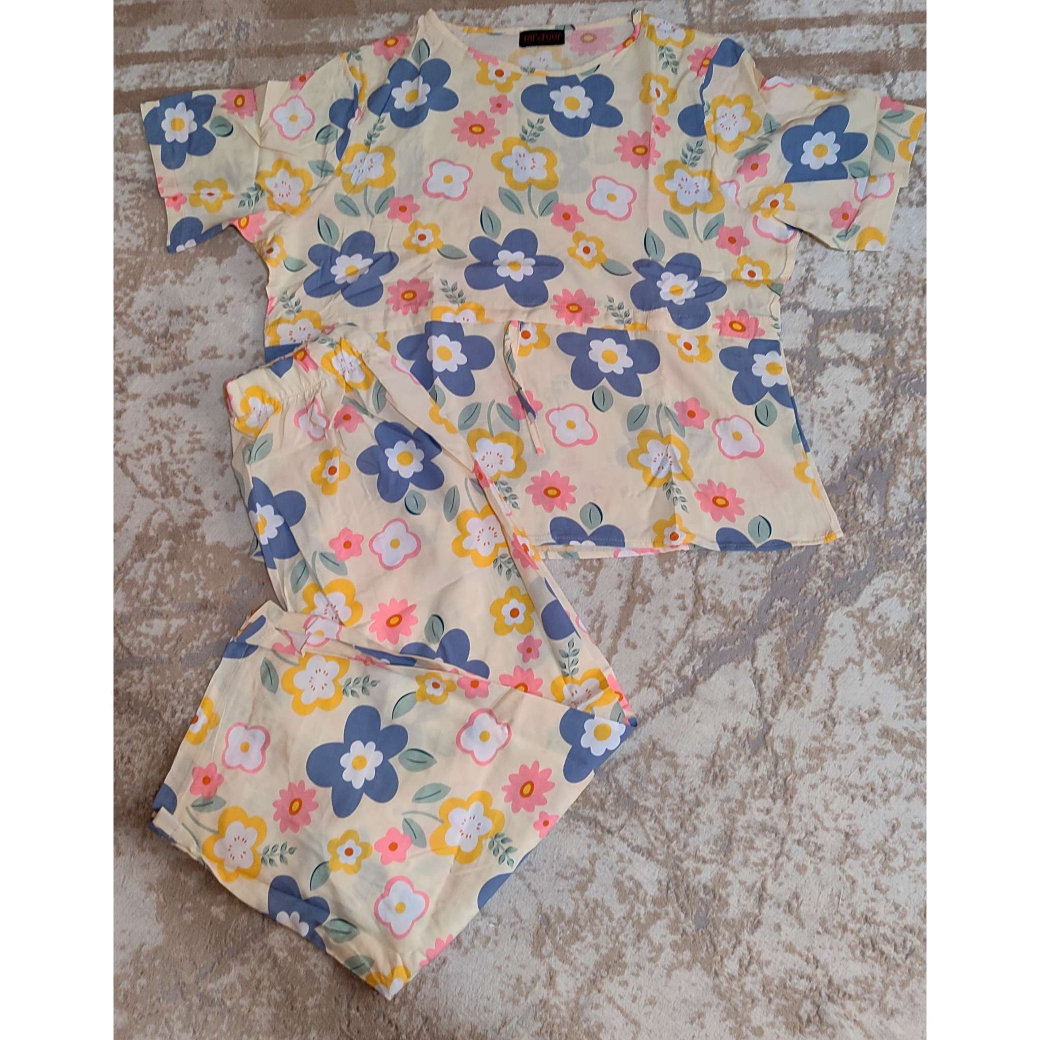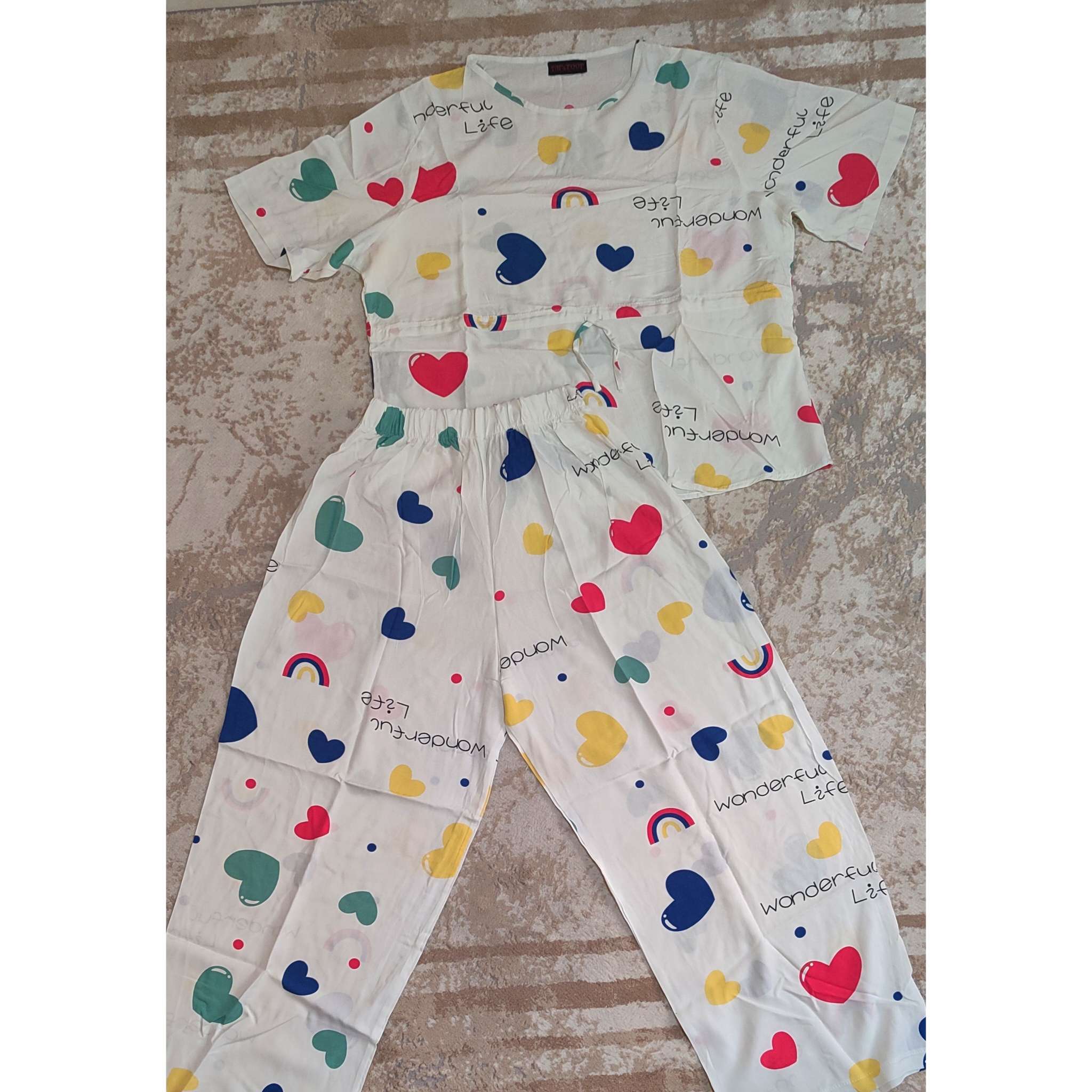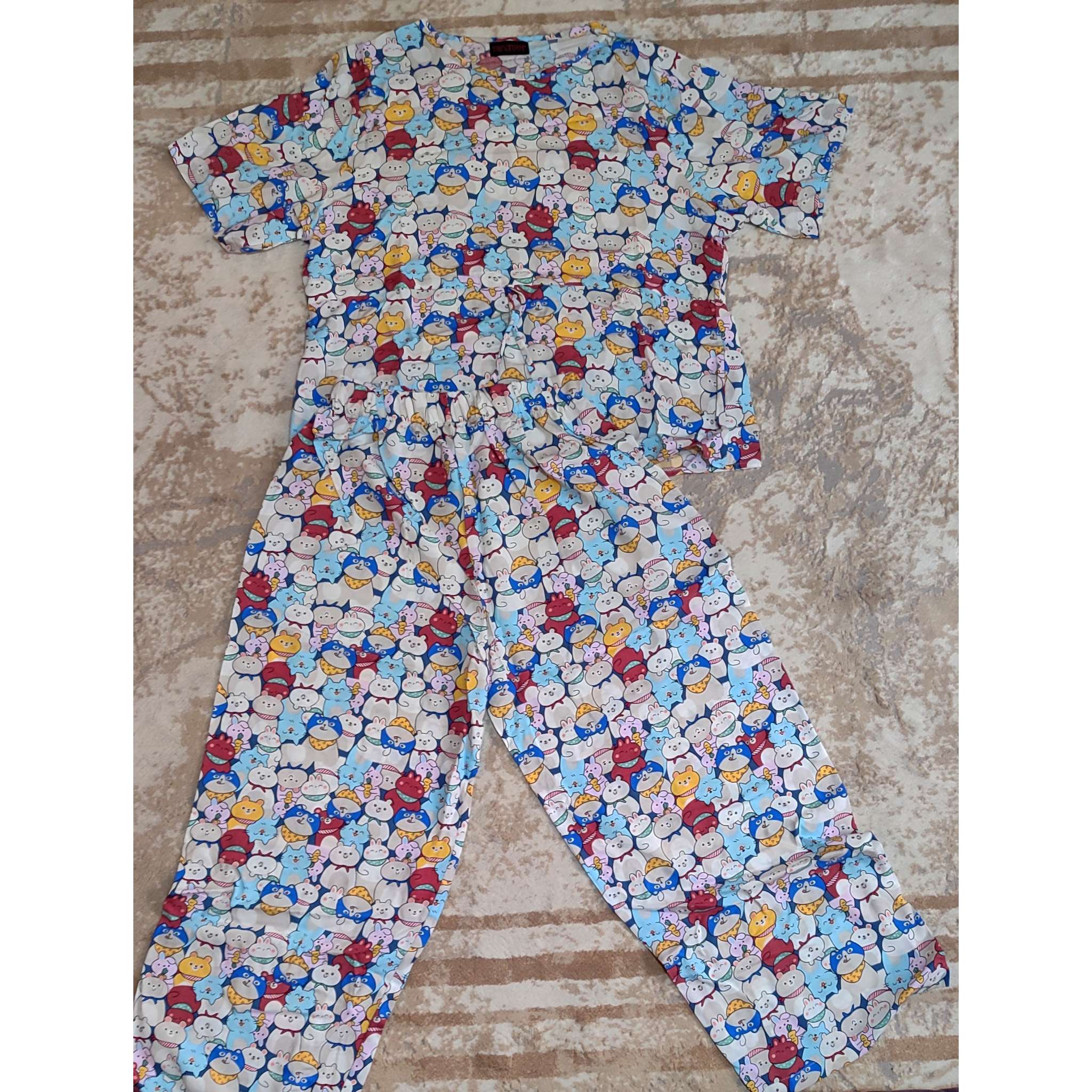 ست بلوز و شلوار راحتی نخی زنانه وارداتی طرح دار کارتونی فری سایز تا ۴۶