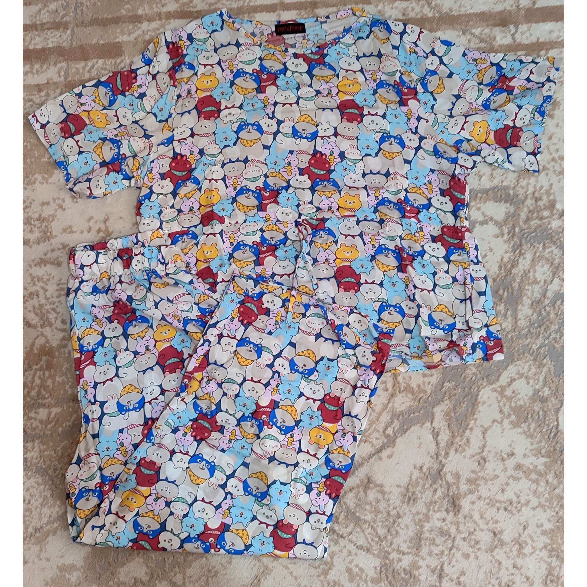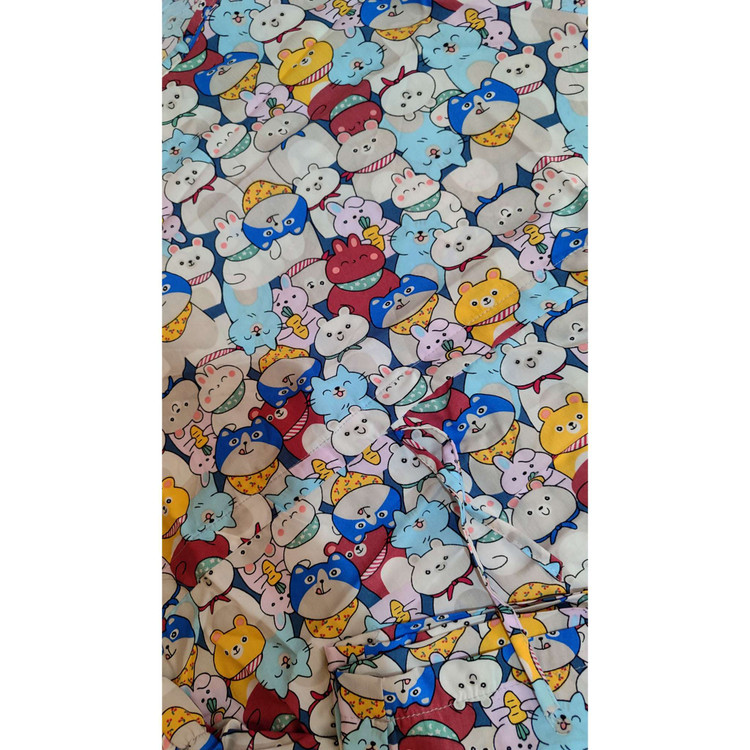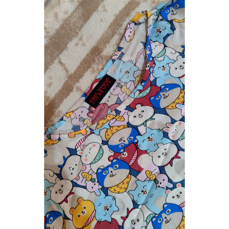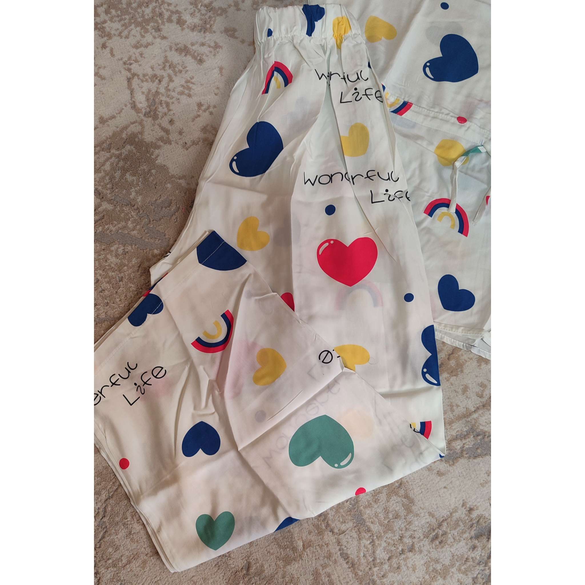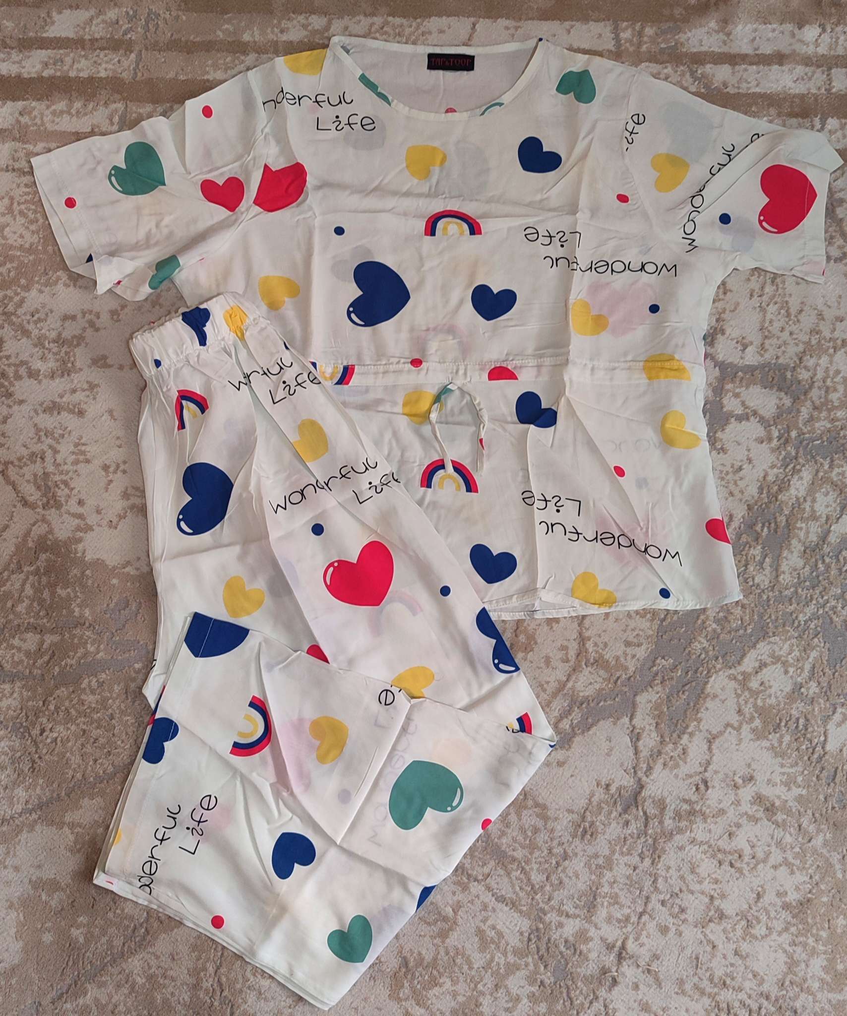 ست بلوز و شلوار راحتی نخی زنانه وارداتی طرح دار کارتونی فری سایز تا ۴۶