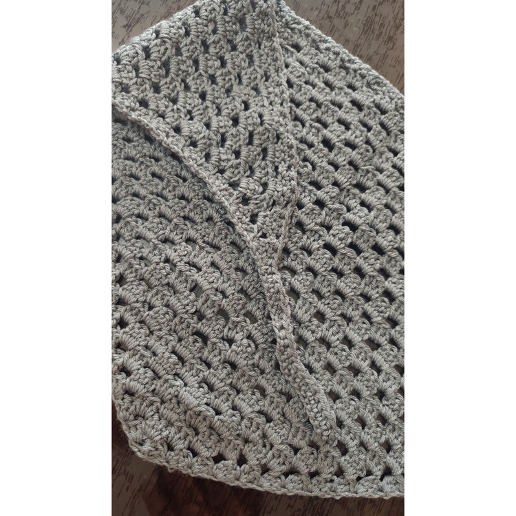 دستمال سر قلاب بافی بافته شده با نخ ترک بند دار نرم و راحت و ضد حساسیت. ارتفاع کار ۲۶ سانت