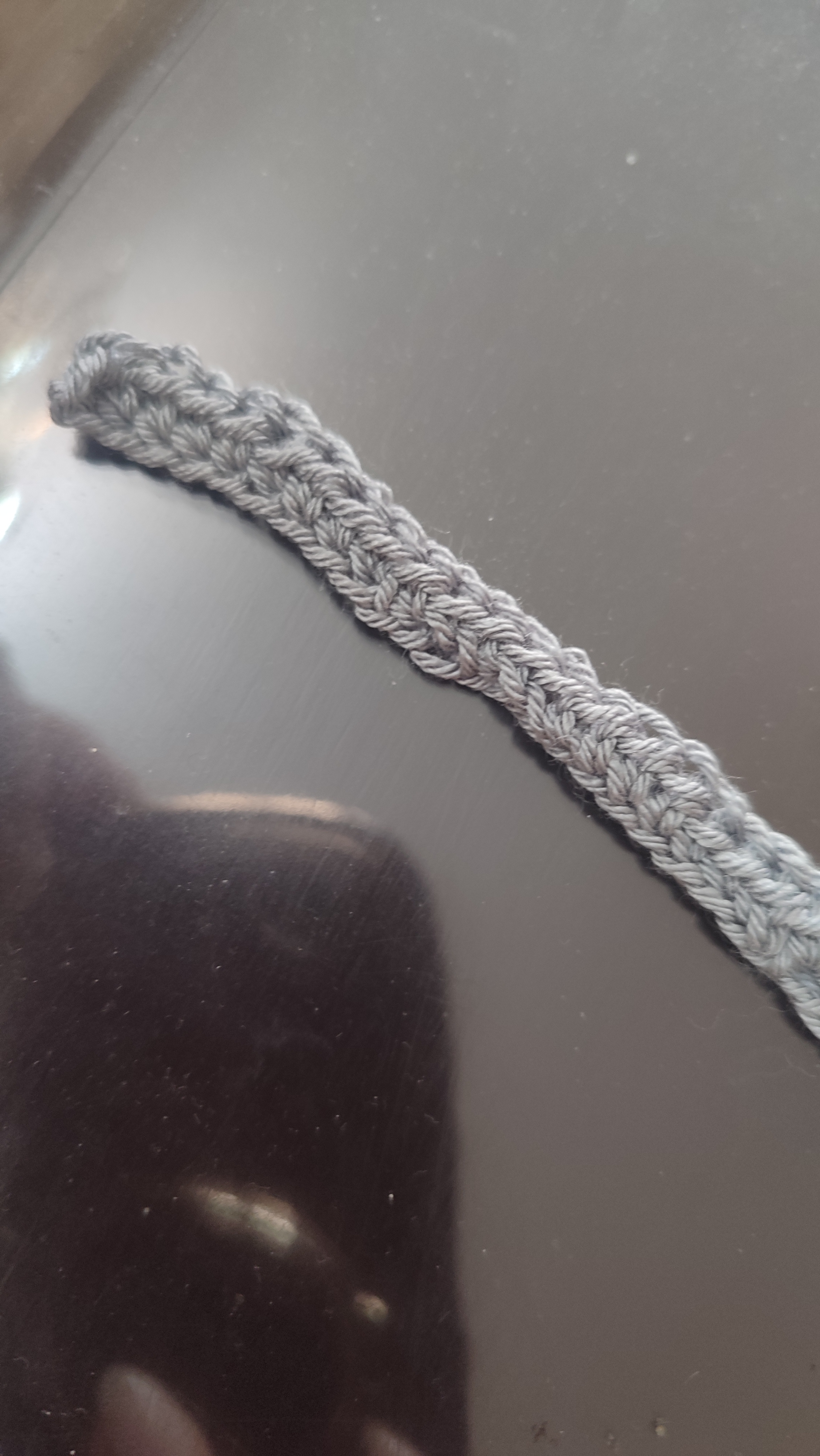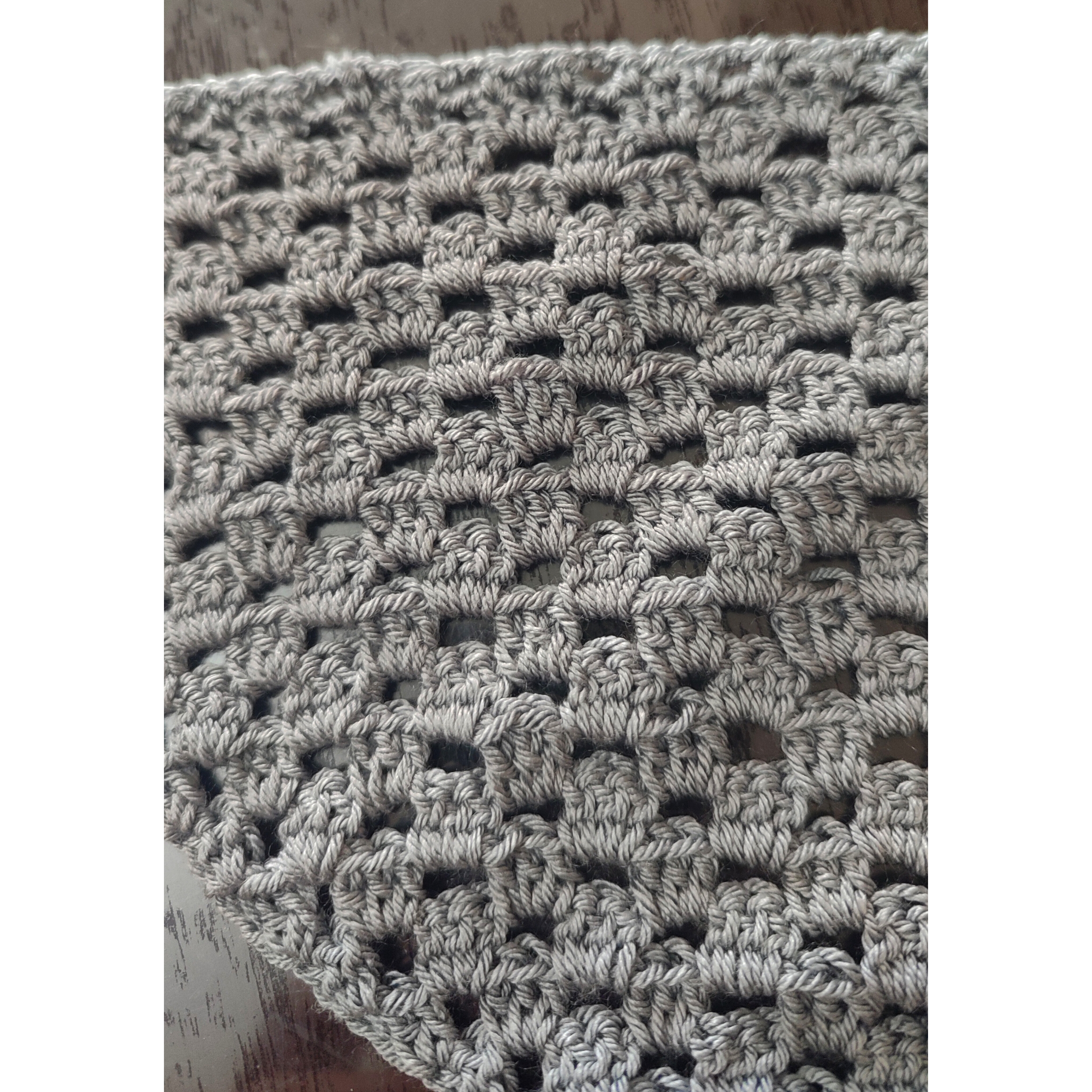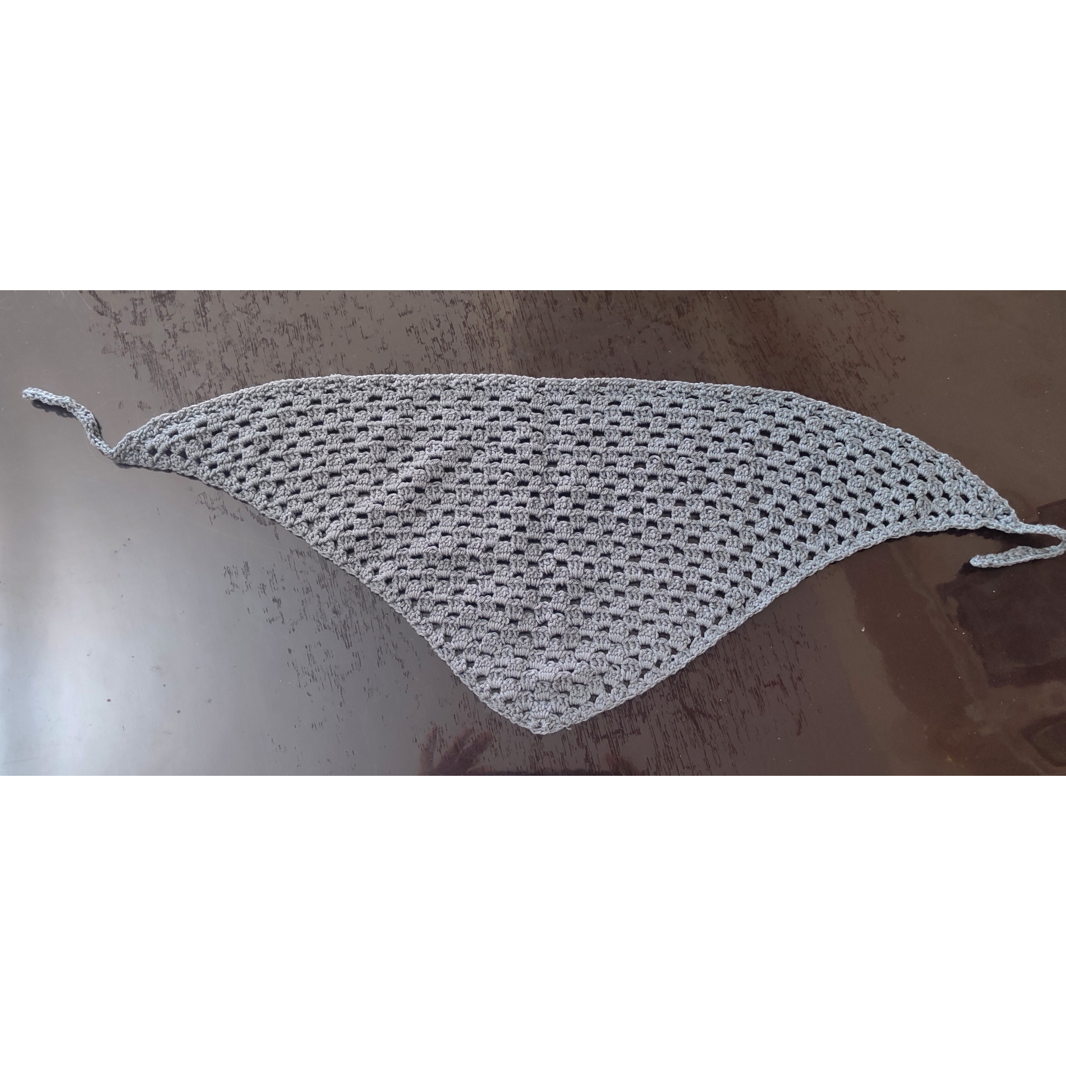 دستمال سر قلاب بافی بافته شده با نخ ترک بند دار نرم و راحت و ضد حساسیت. ارتفاع کار ۲۶ سانت