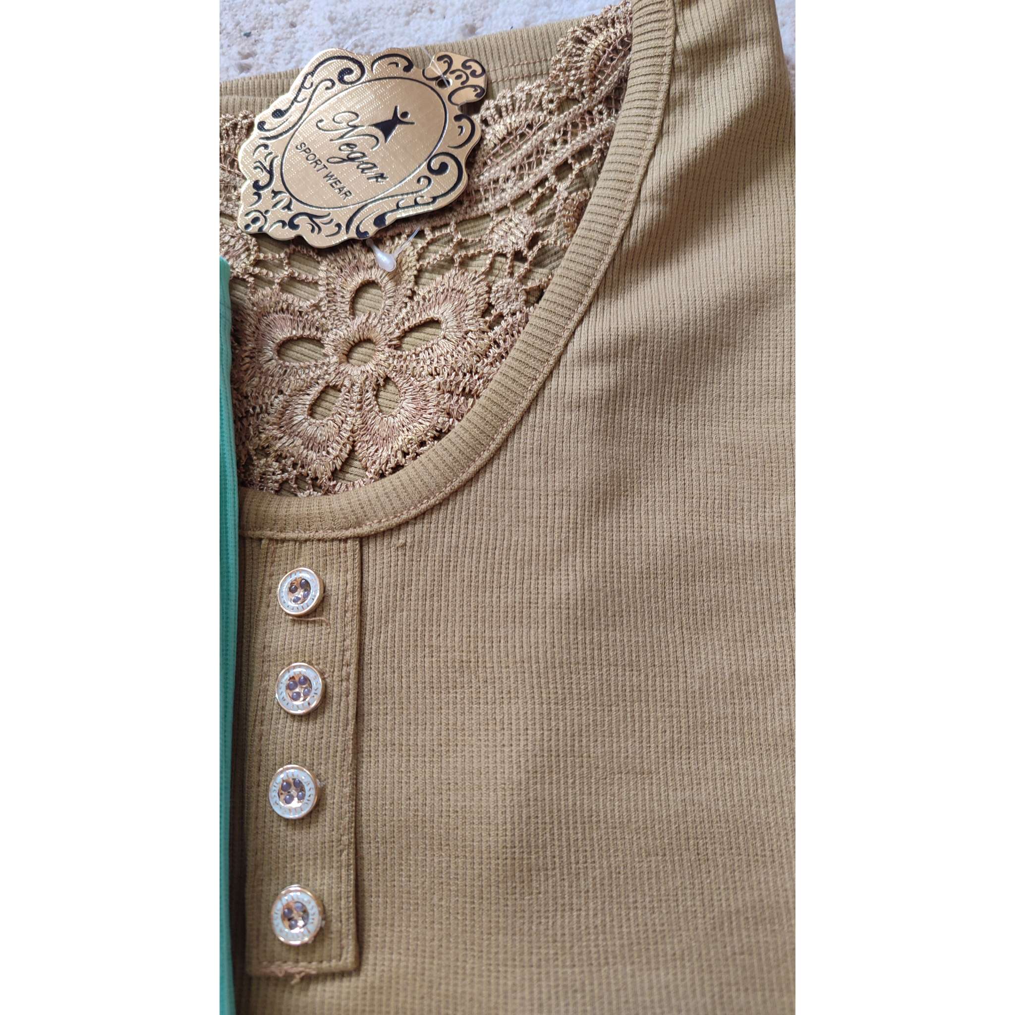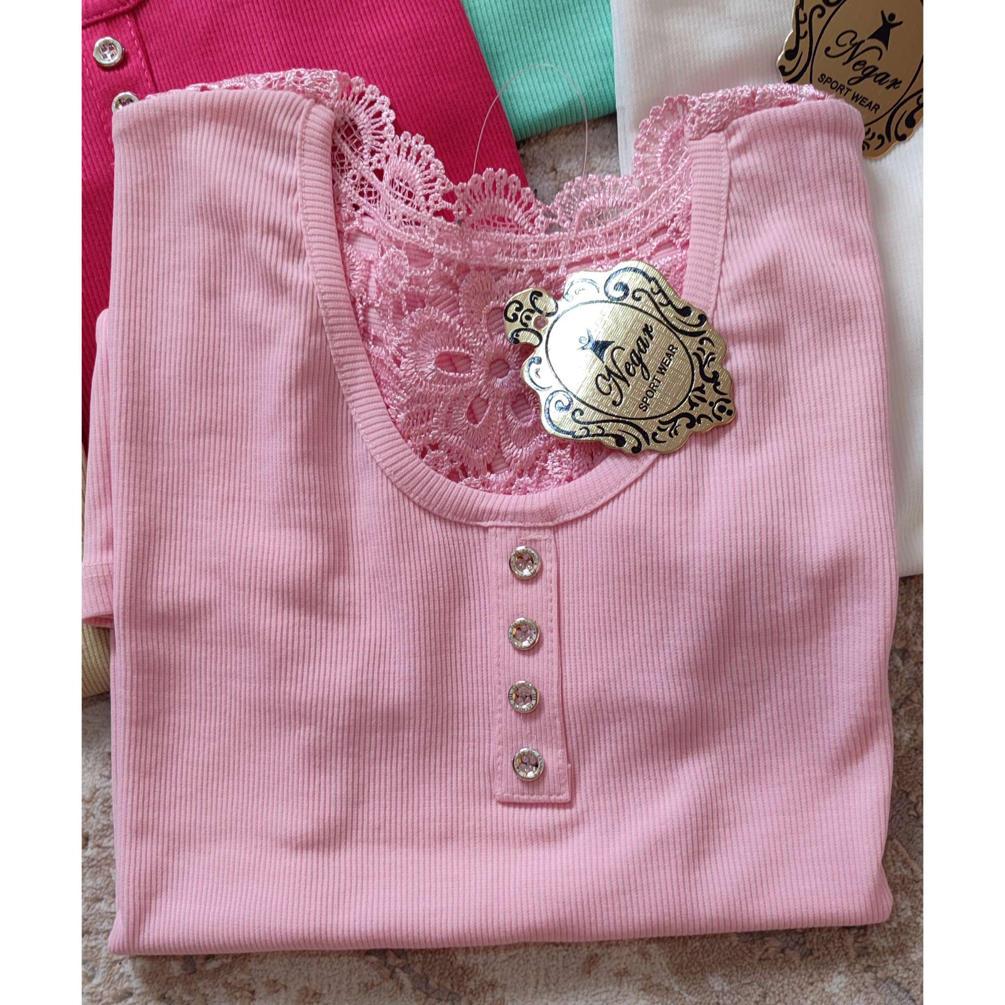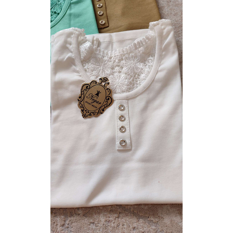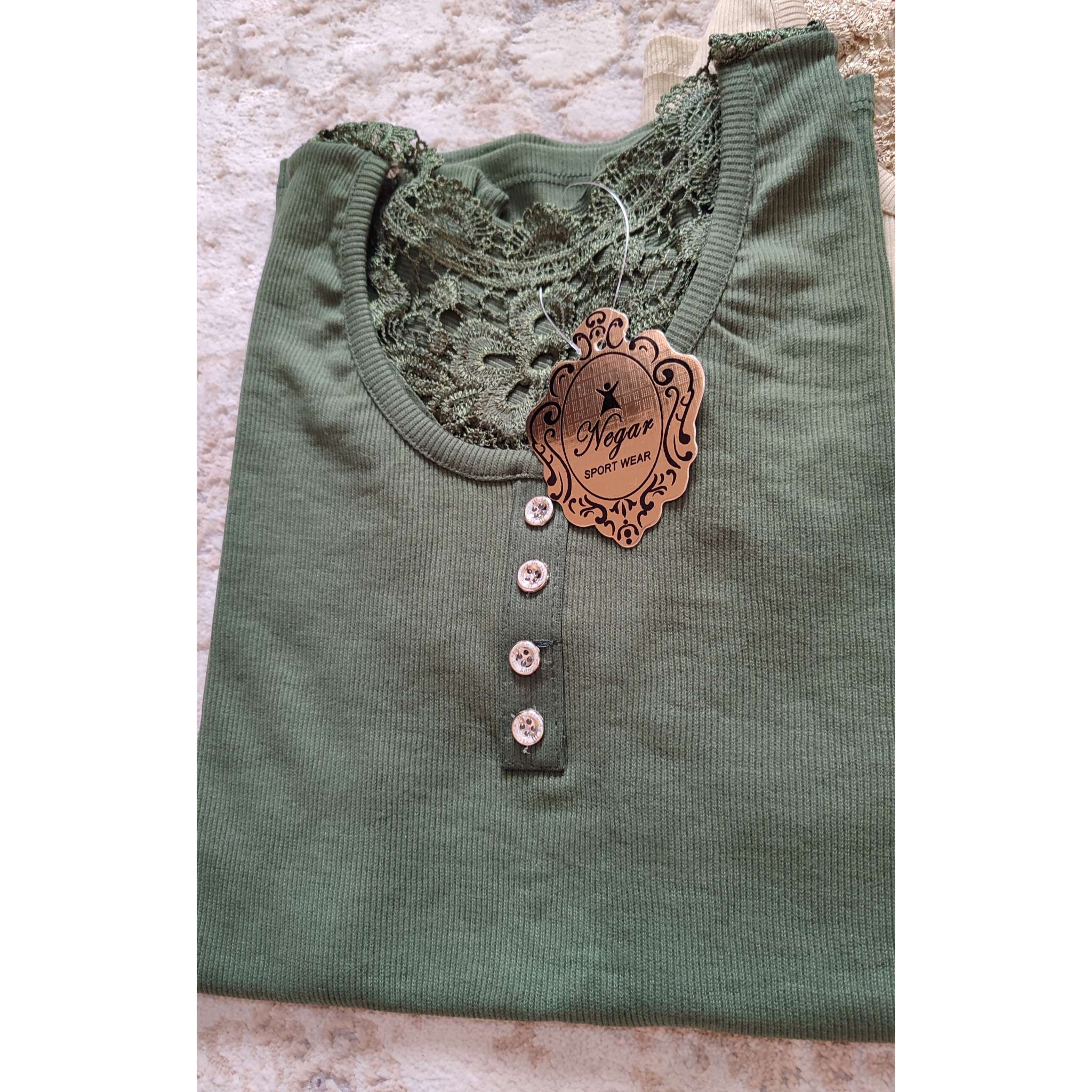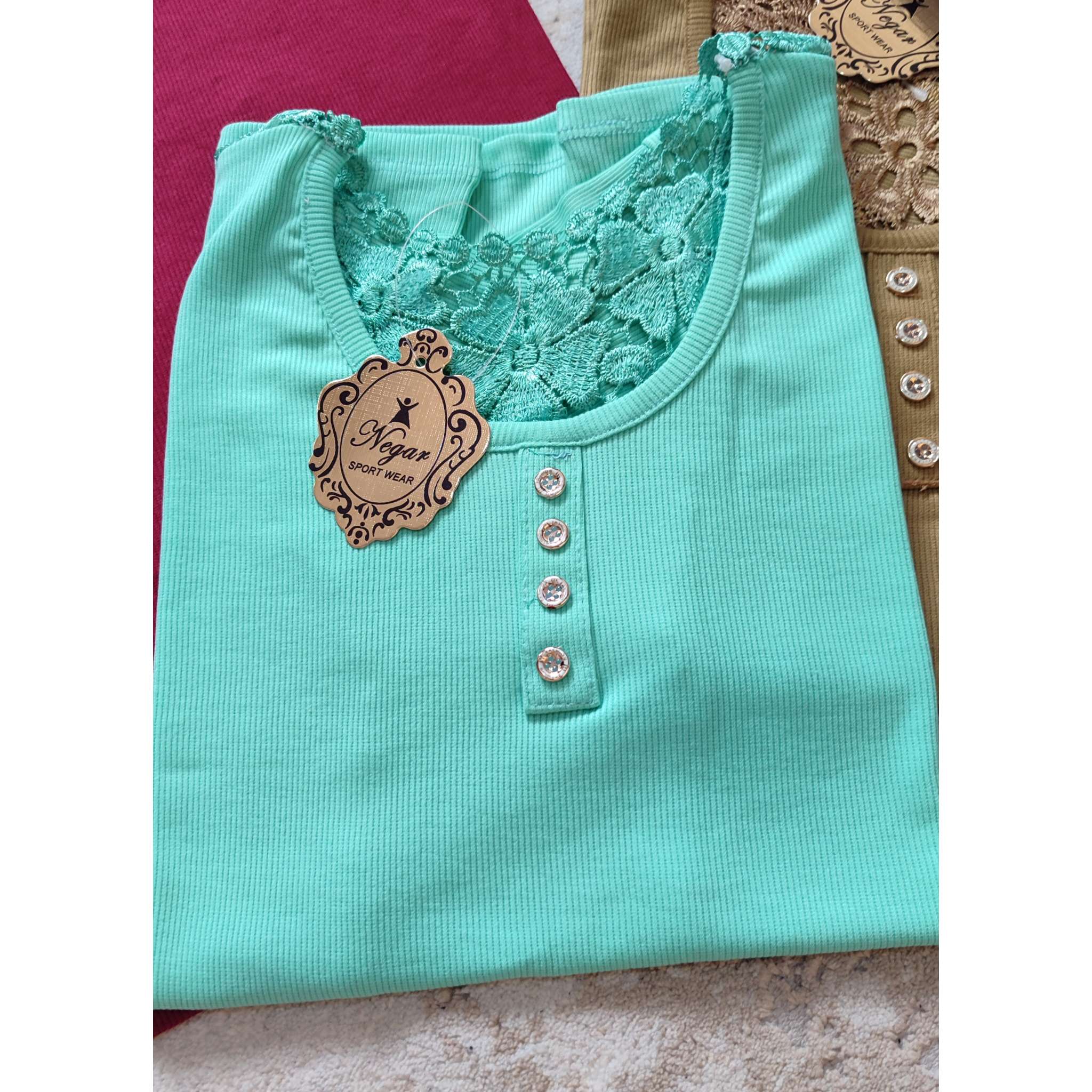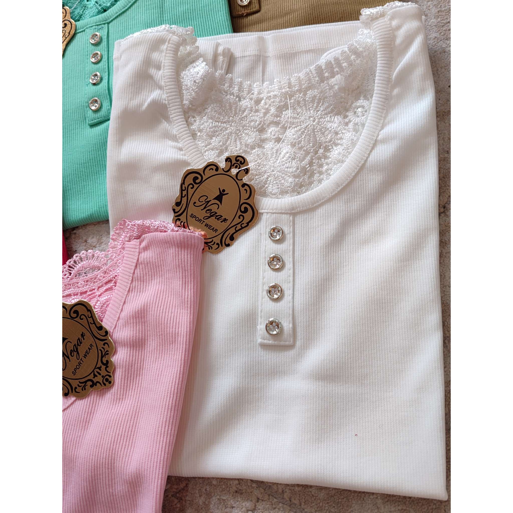 بلوز تیشرت مجلسی نخی کبربتی پشت گیپور زنانه با کشسانی بالا