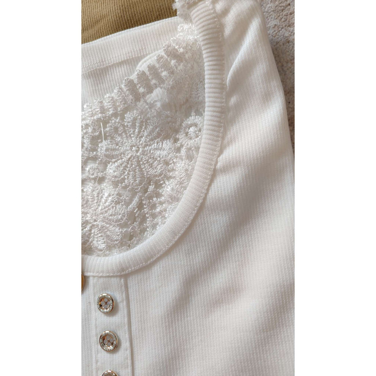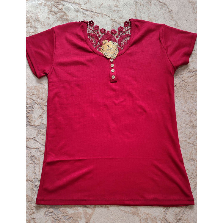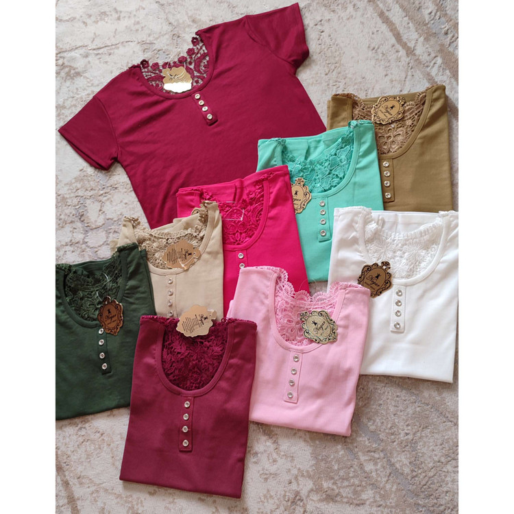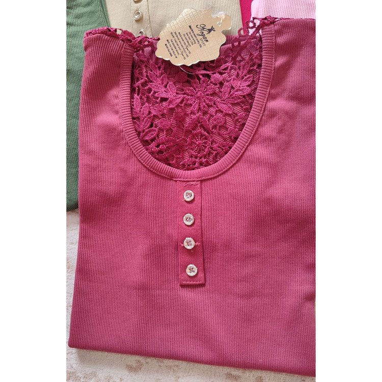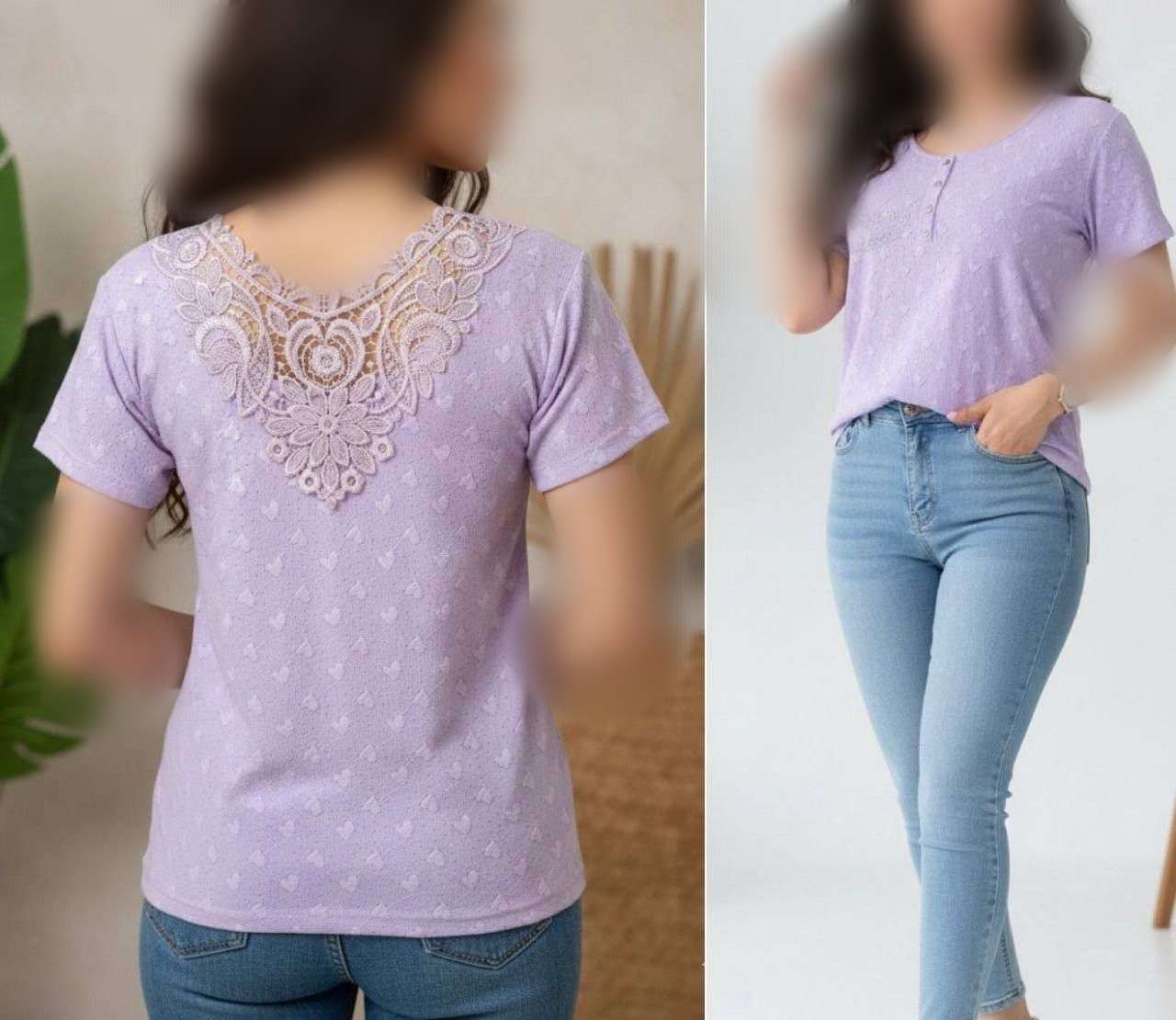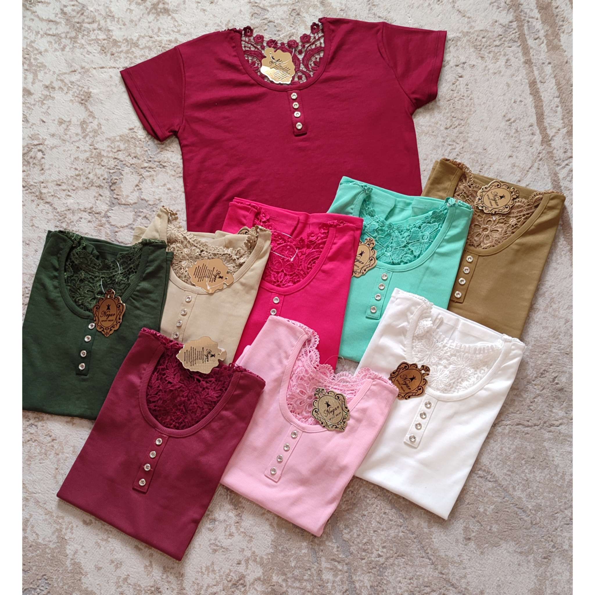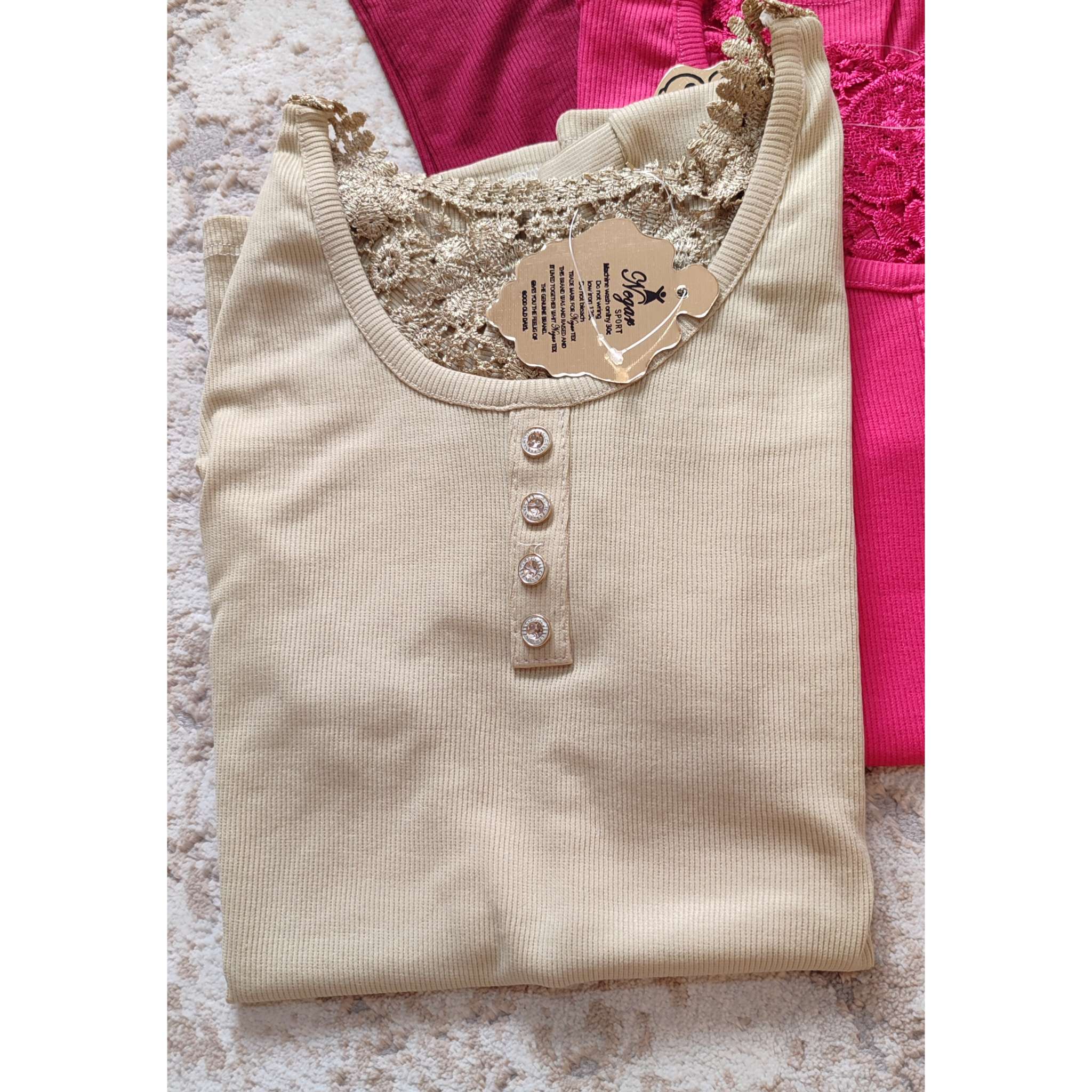 بلوز تیشرت مجلسی نخی کبربتی پشت گیپور زنانه با کشسانی بالا