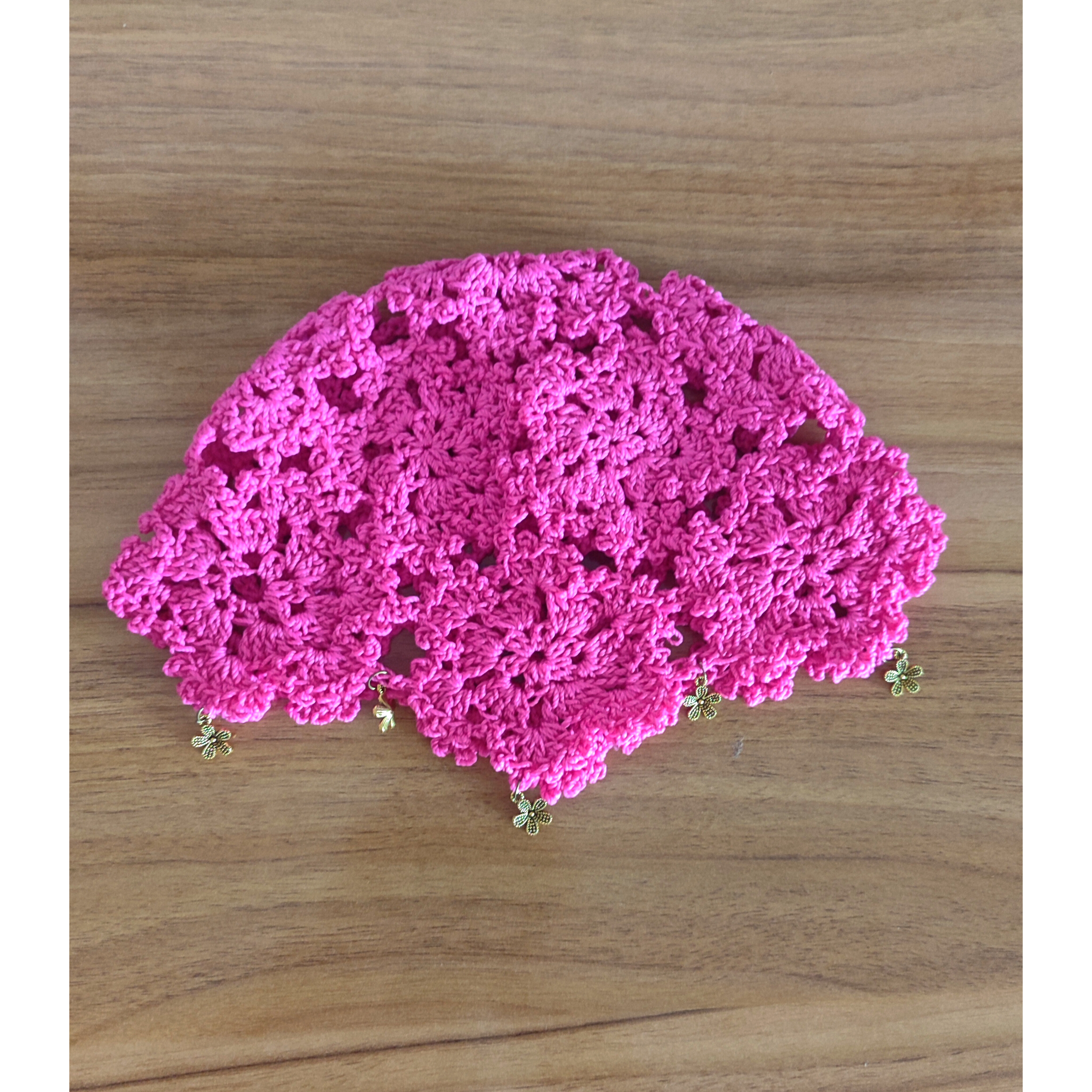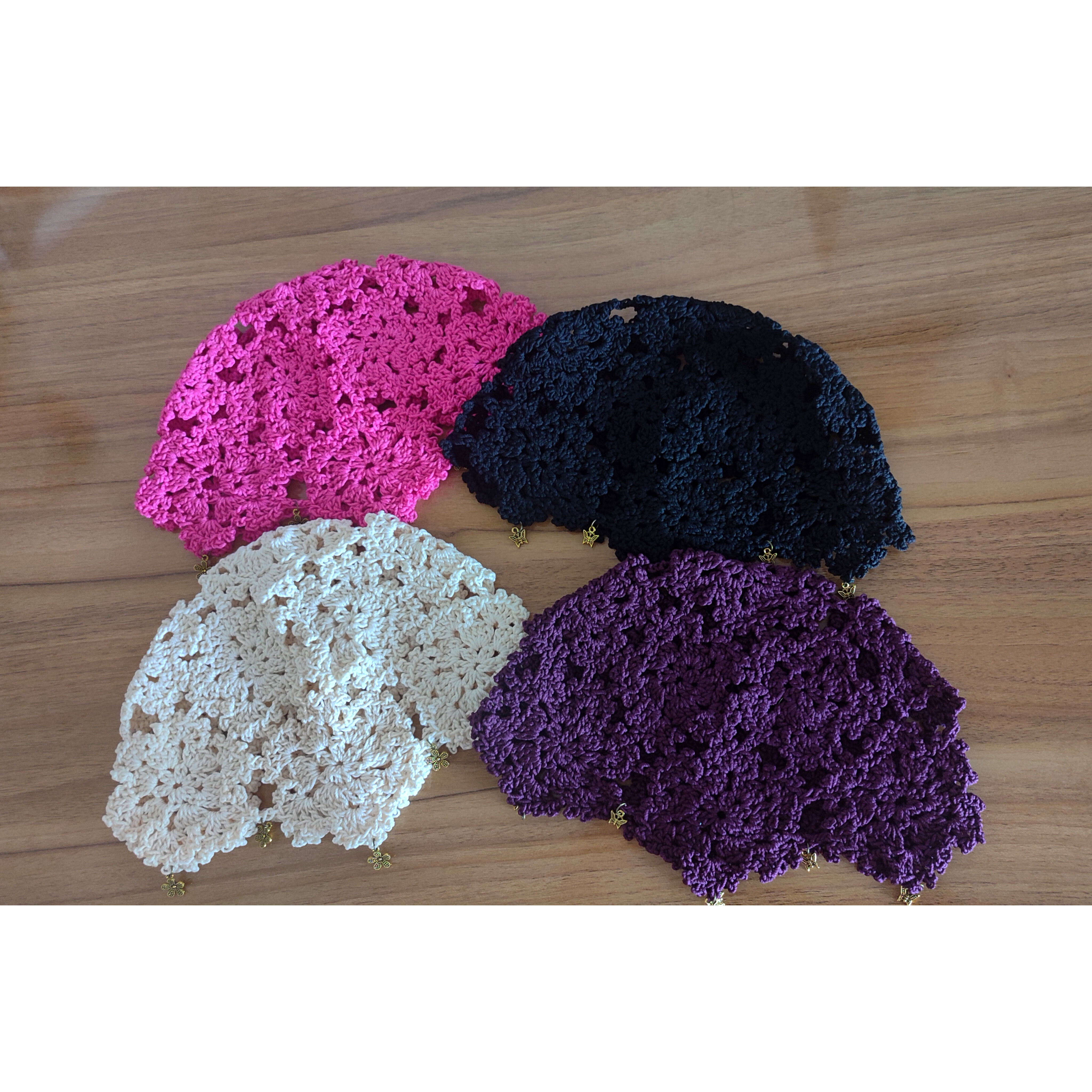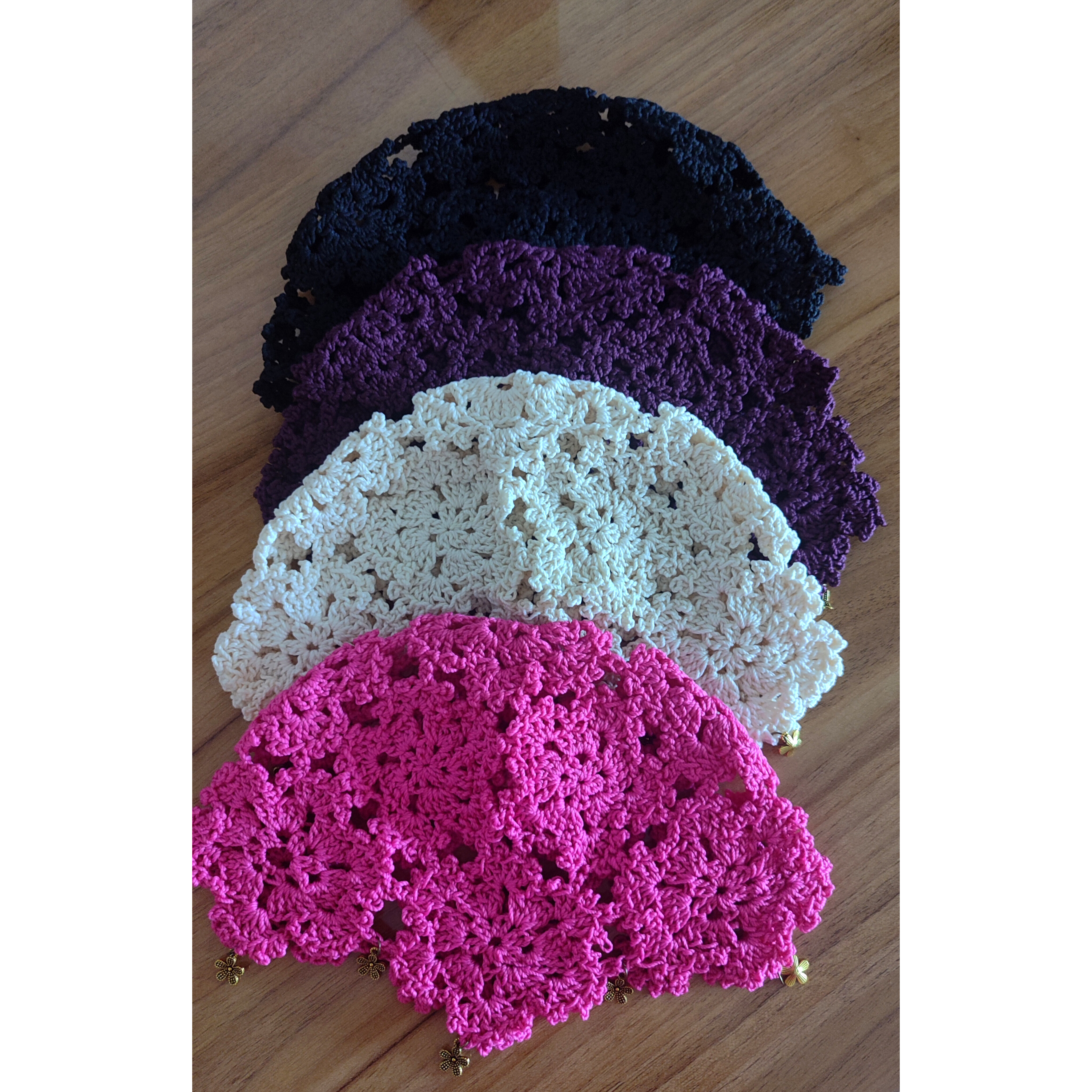 کلاه قلاب بافی با نخ صد در صد کتان مناسب تابستان.
