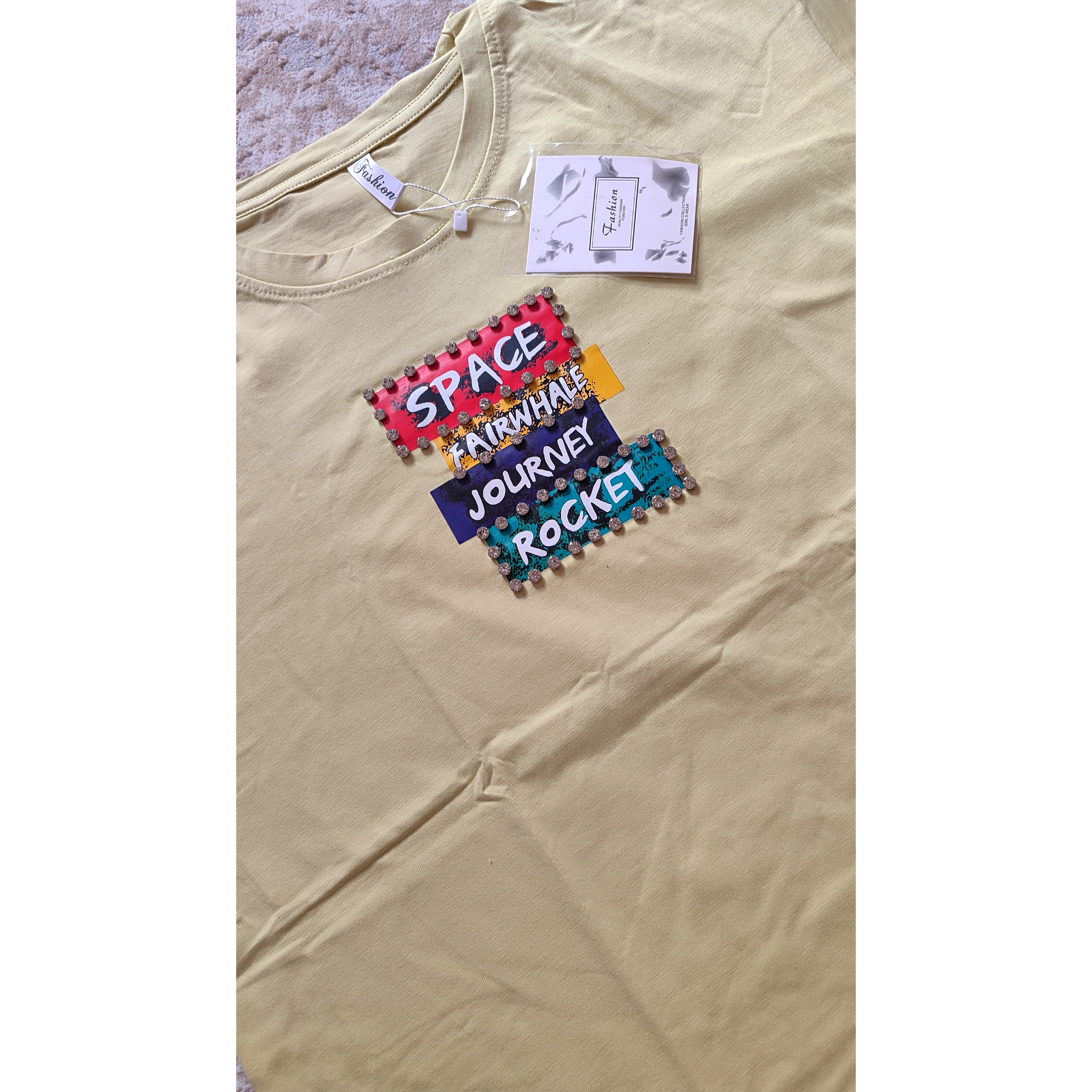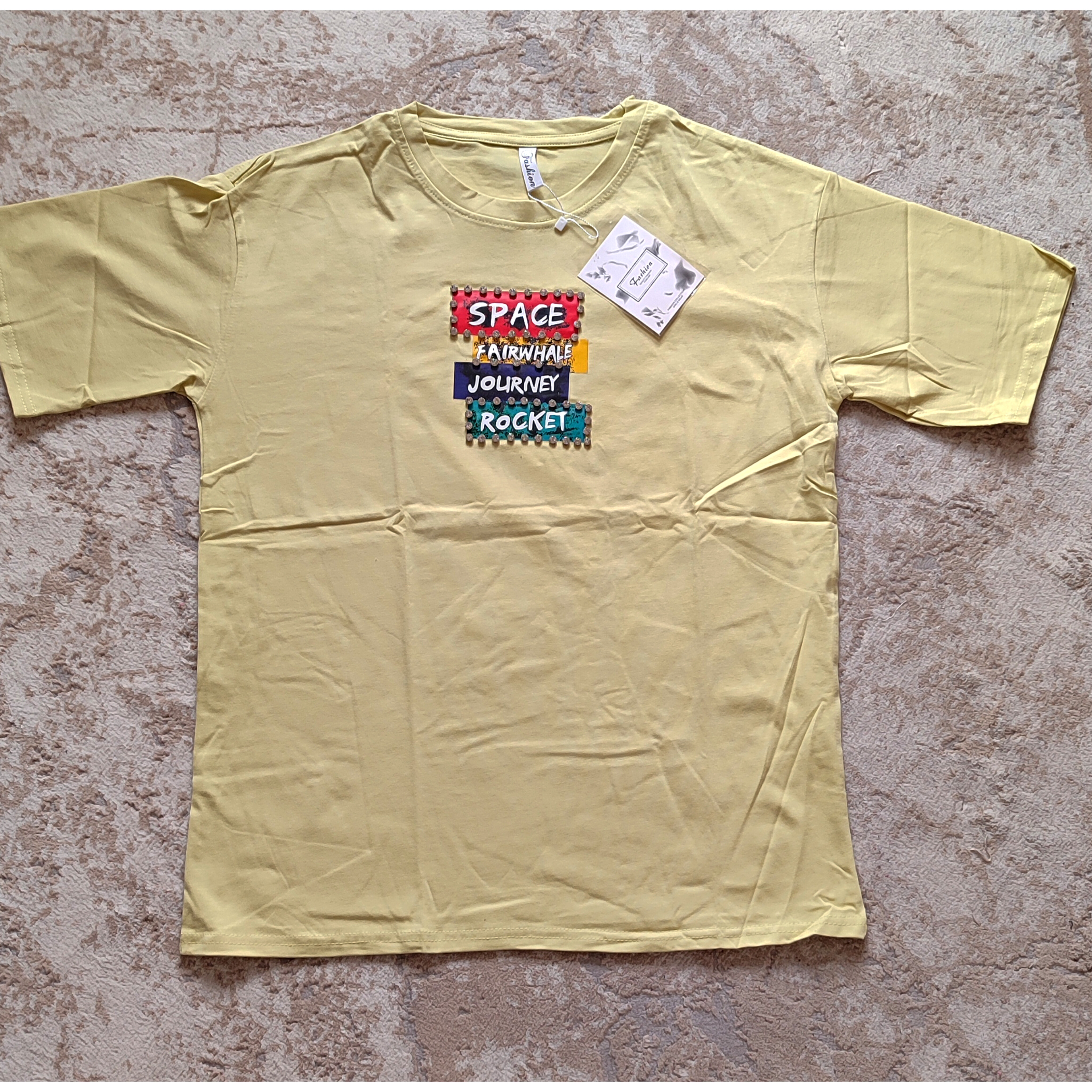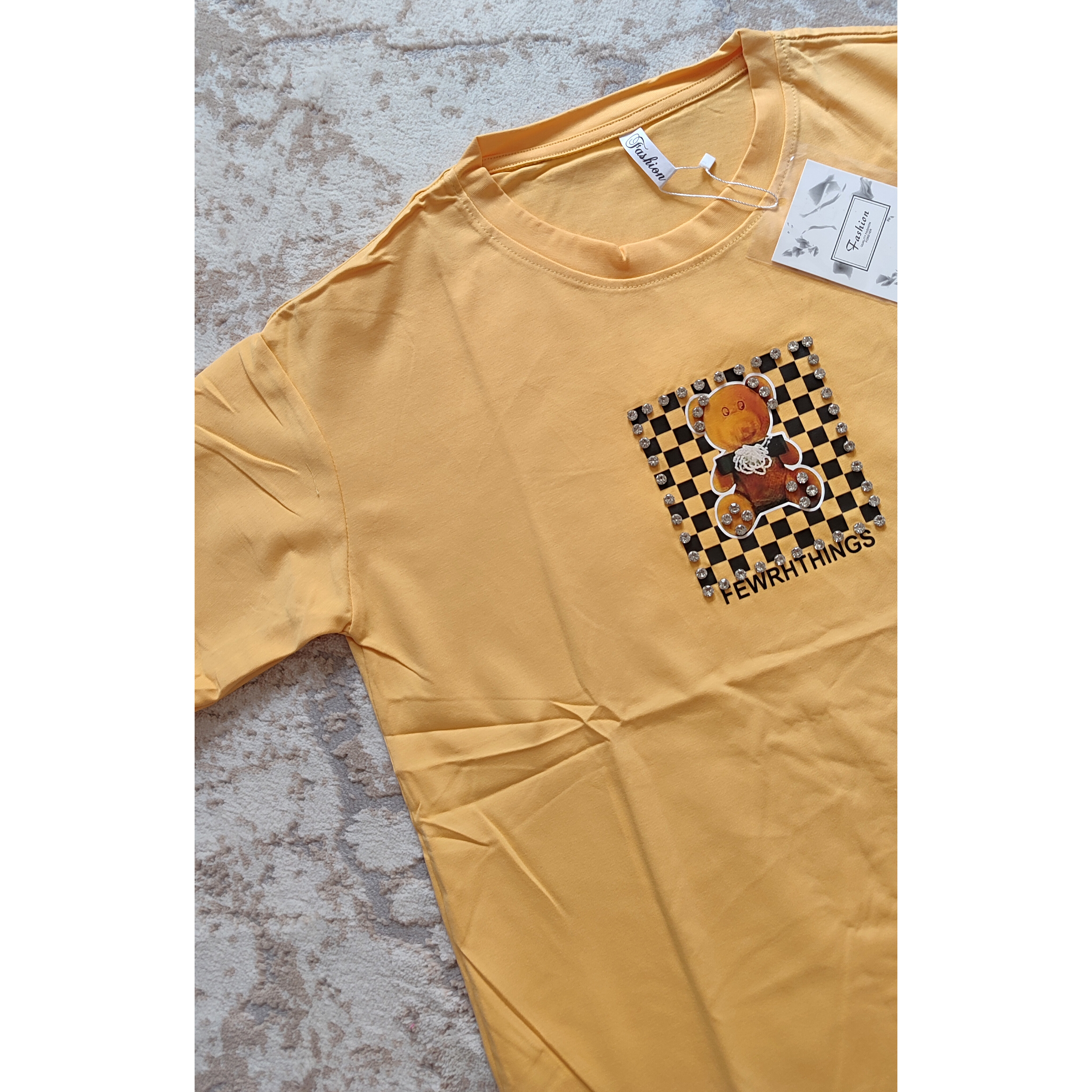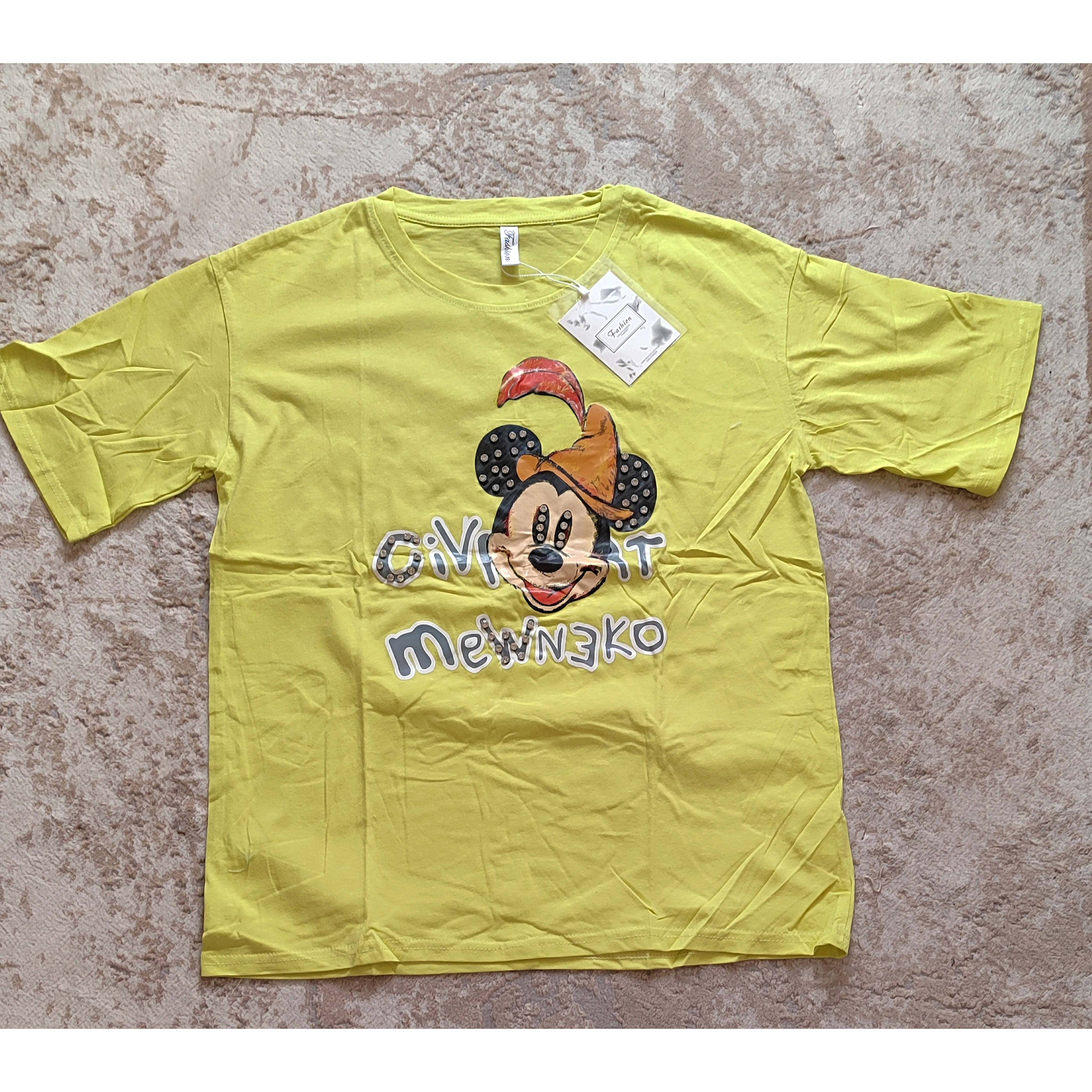 تیشرت لانگ وارداتی نخ پنبه اعلا با طرحهای کارتونی کیوت و رنگهای شاد (روی طرح جزئیات کریستالی دارد)