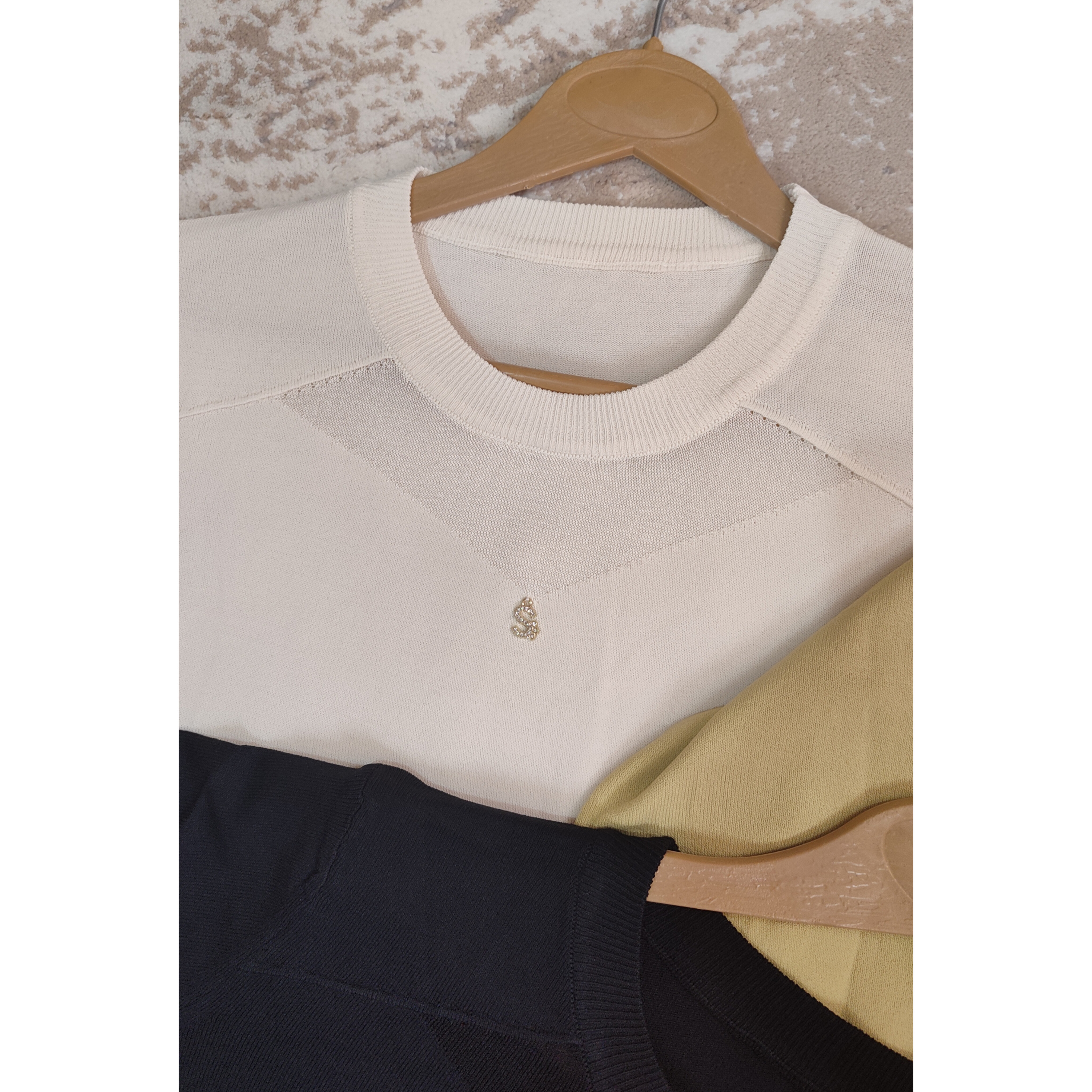 بلوز ریزبافت کریستالی آستین سه ربع وارداتی زنانه مجلسی و اسپورت شیک