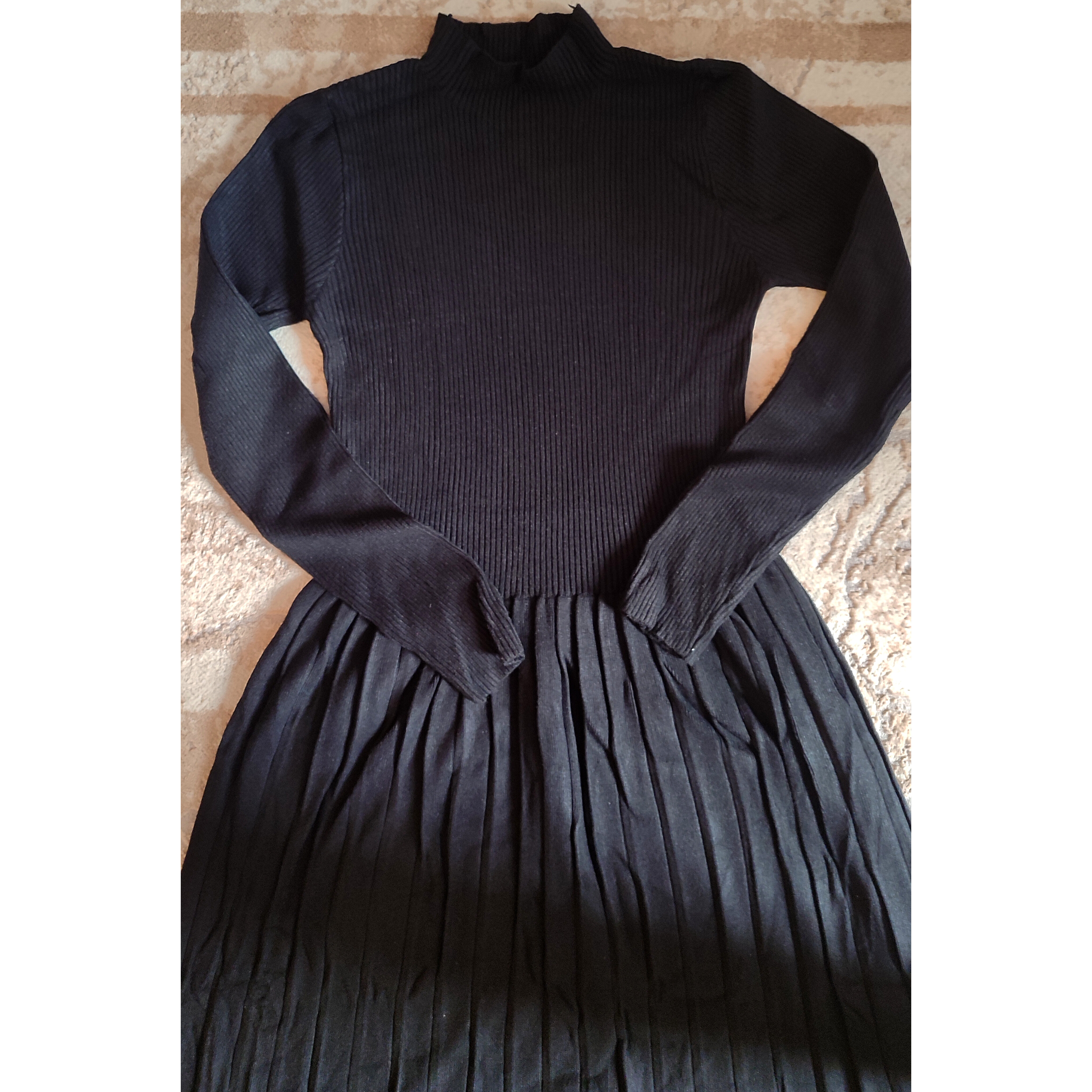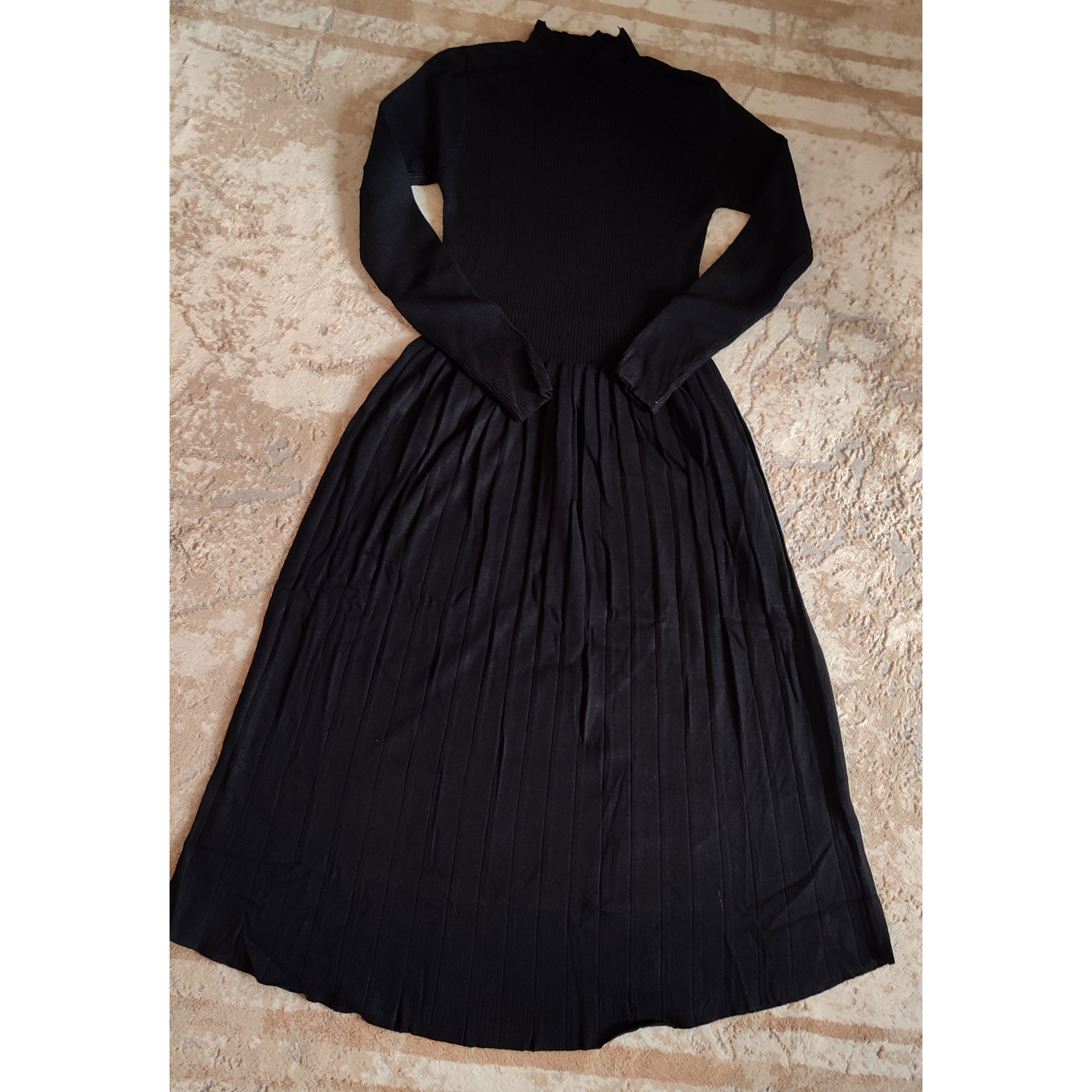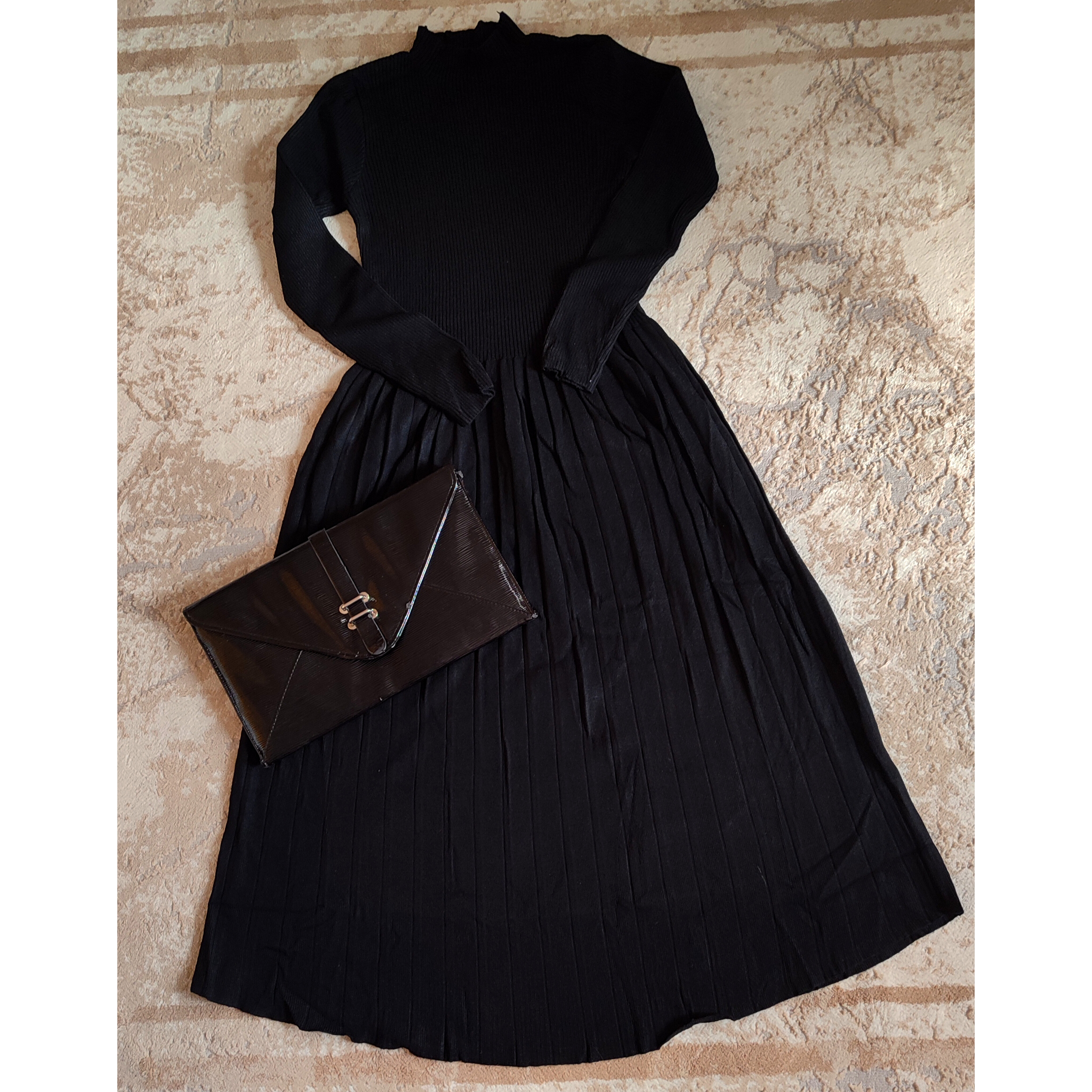 پیراهن بافت بلند دامن پلیسه یقه سه سانت آستین بلند زنانه وارداتی فری سایز تا ۴۶ مشکی
